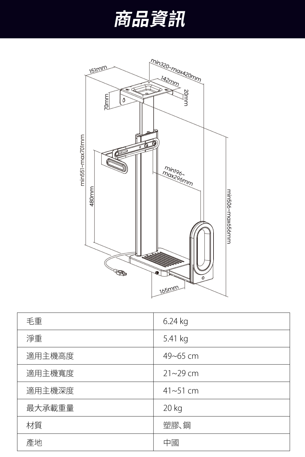 ✅ 適用主機最大 W29 x D49 x H62 cm,耐重 20 kg