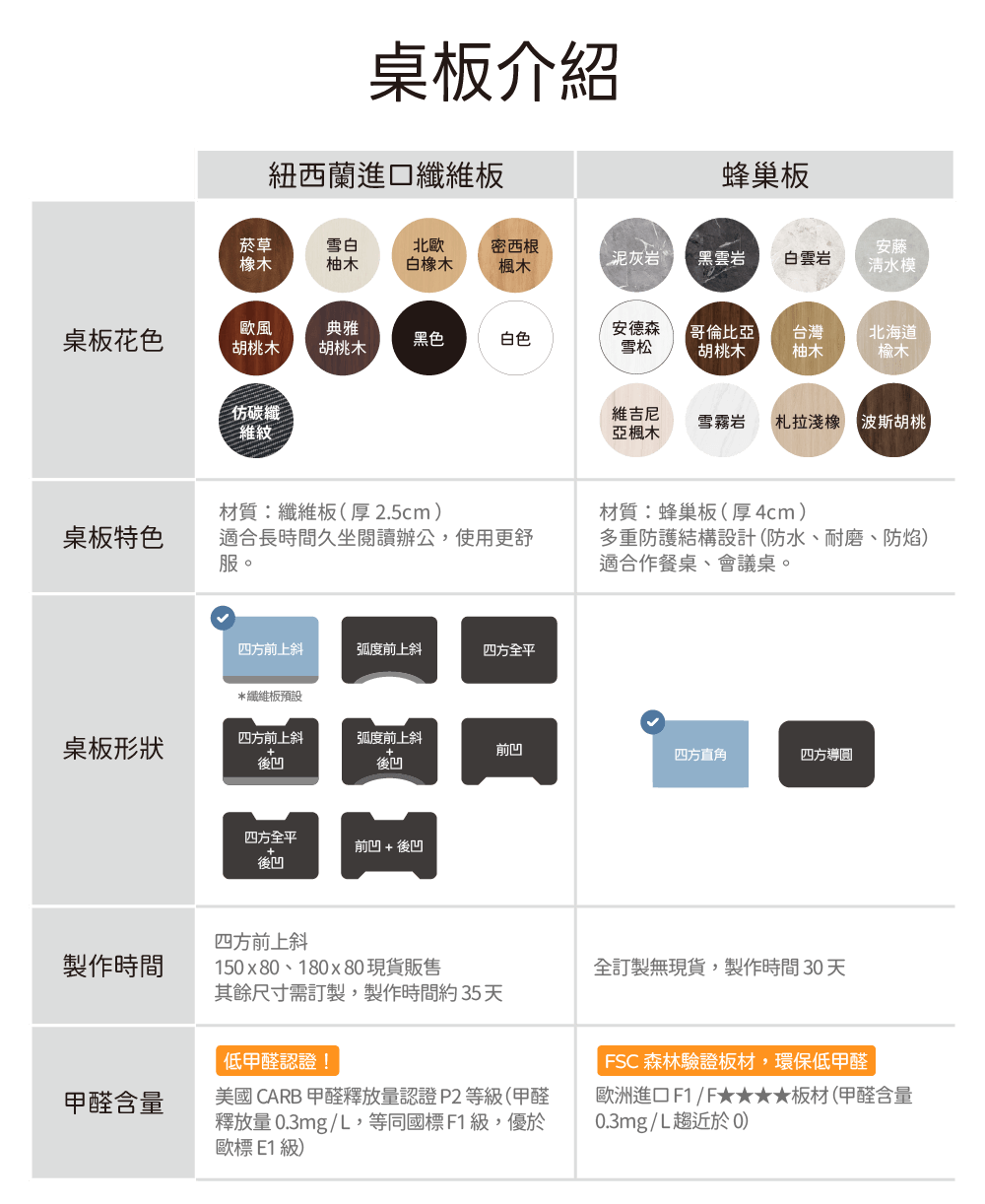 ▸ 桌板顏色:
