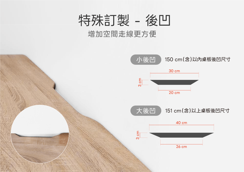 (桌板為半手工裁切,誤差 0.5~1 公分內屬正常範圍,若欲擺放空間有限制的顧客,請至少多預留 2 公分。)