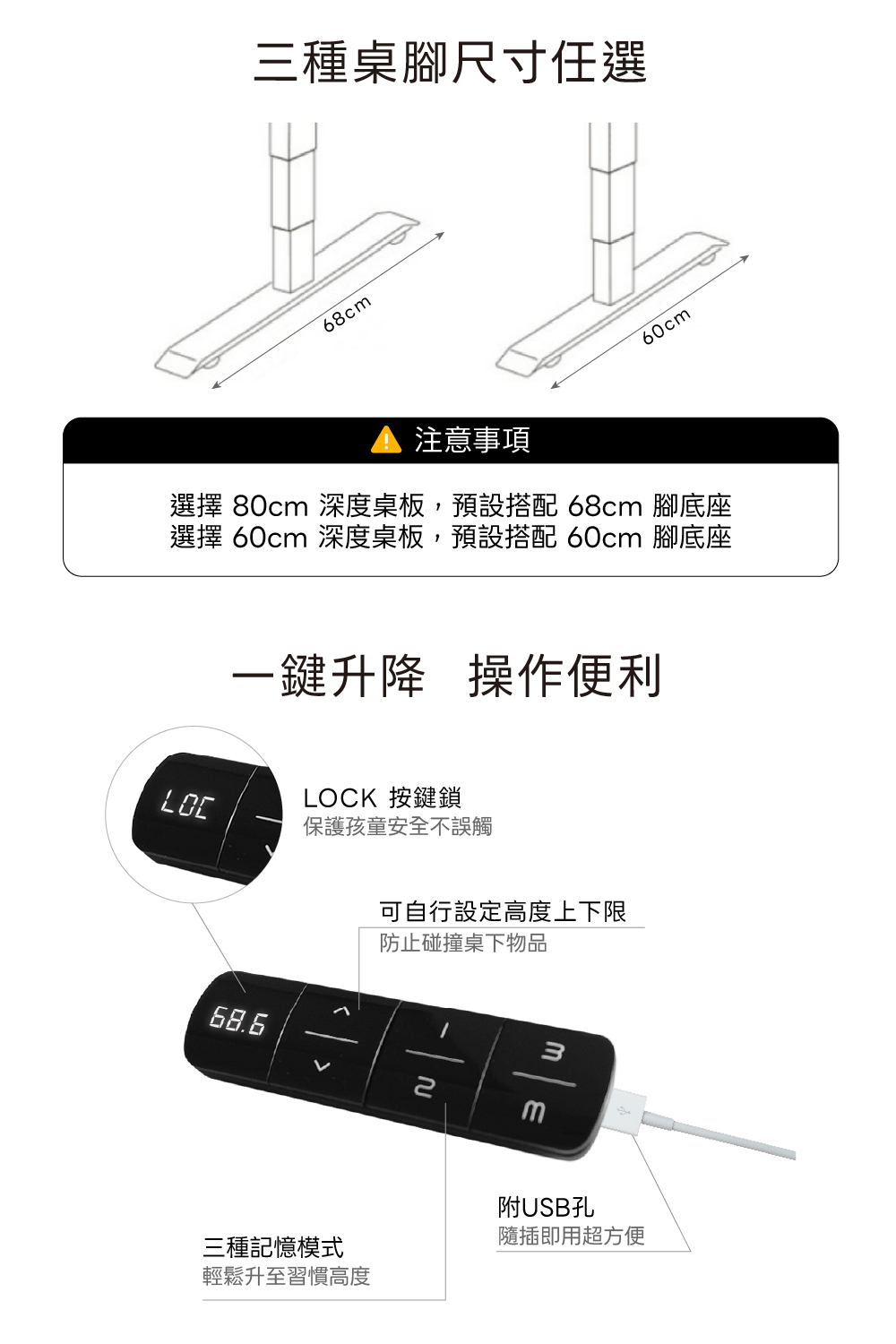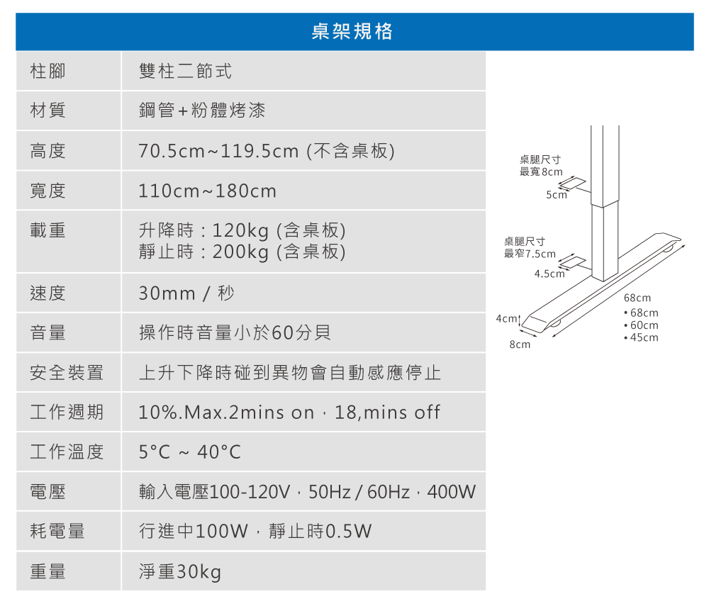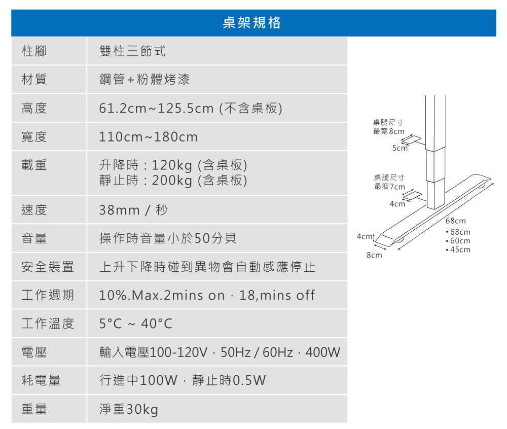✅ 二節升降高度:74.5~122.5cm