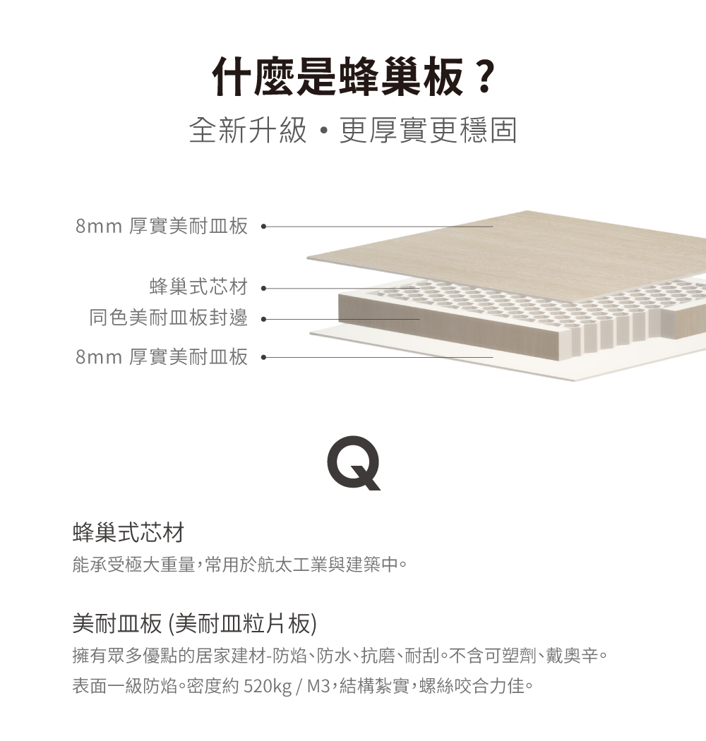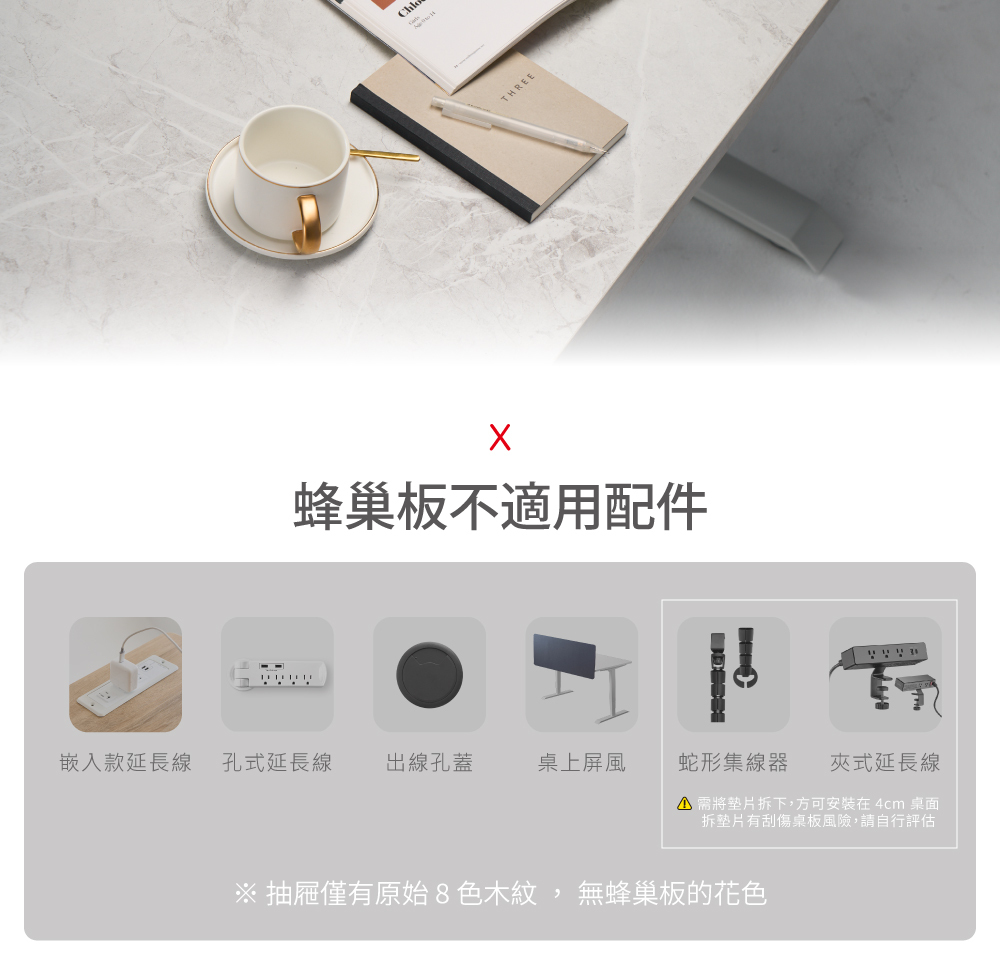 🔺蜂巢板可 +$800 導圓角,訂製時間約 45 天
