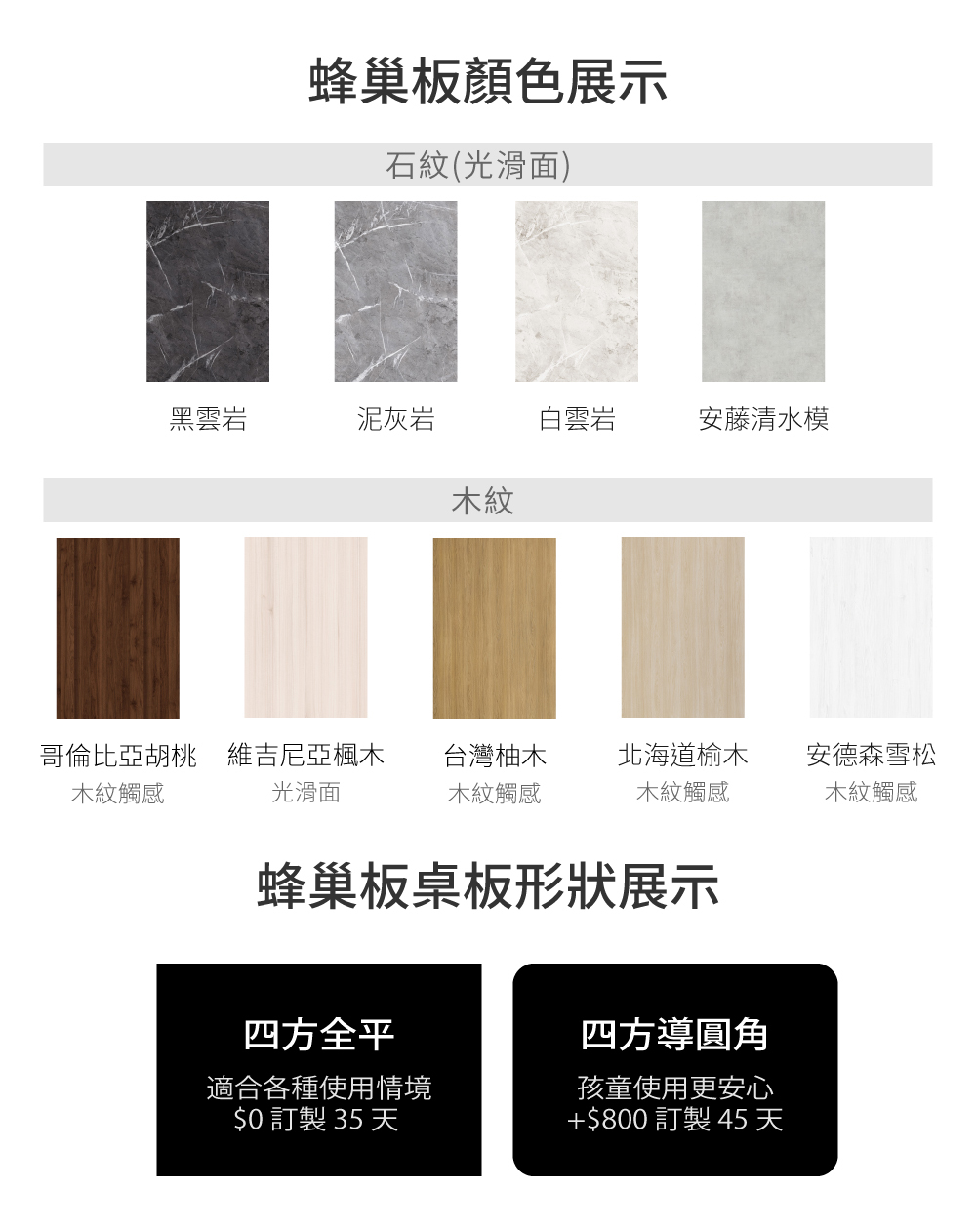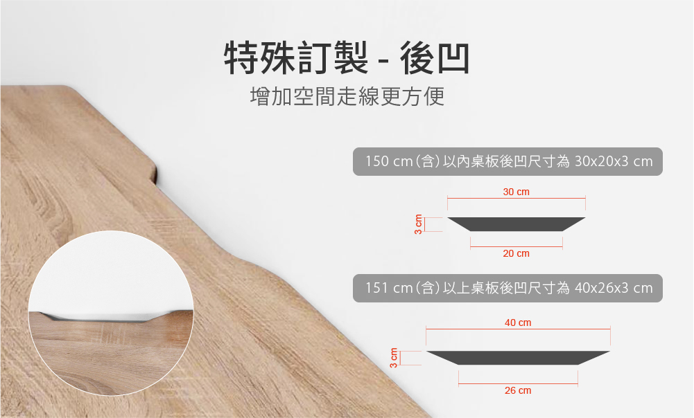 (桌板為半手工裁切,誤差 0.5~1 公分內屬正常範圍,若欲擺放空間有限制的顧客,請至少多預留 2 公分。)