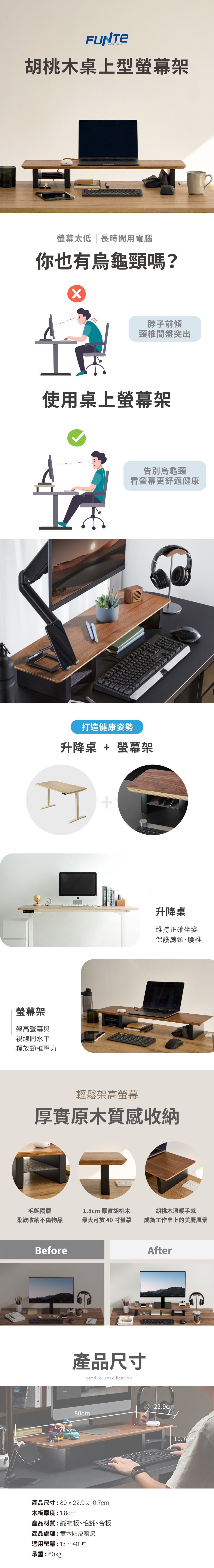 ✅ 加長型胡桃木,適用 13~40 吋螢幕
